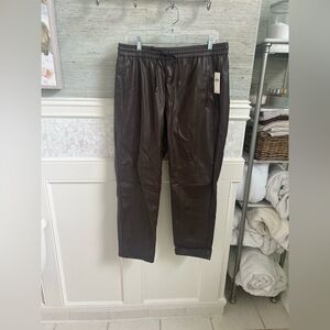 NWT new large Anthropologie sakara faux vegan leather jogger pants cocoa brown