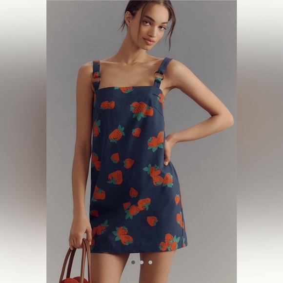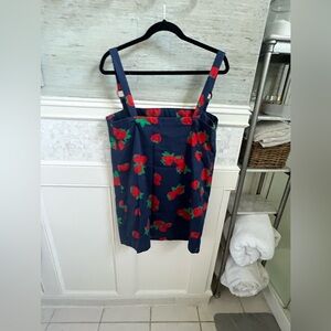 NWT new medium Anthropologie Maeve square neck shift dress strawberry navy blue