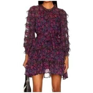 size S CLEOBELLA ROSALIA MINI DRESS ruffle slip dress w/belt Revolve $268 purple