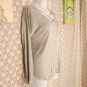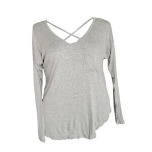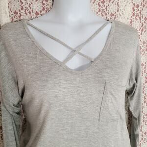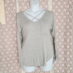 NWT no boundaries gray long sleeve top with pocket high low cross detail