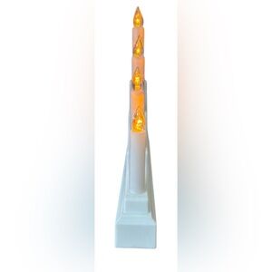 * Only taken out of the box for pictures. Transform your home into a winter wonderland with this pre-lit candelabra. This modern candelabra features seven tiers of flickering, amber-colored LED lights that will radiate a warm and inviting glow. Whether placed on your mantel or used as a centerpiece on your dining table, this candelabra will bring the magic of the holiday season into your home