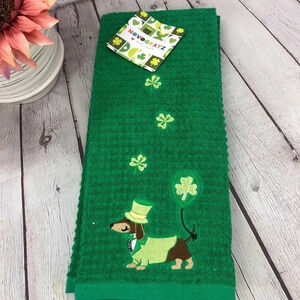 NWT novagratz St Patrick's Day kitchen towel with dachshund leprechaun