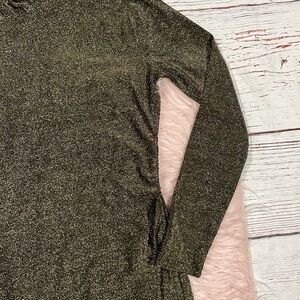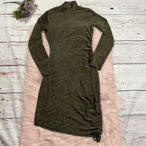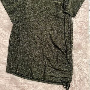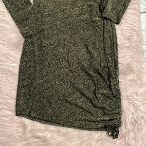 New with tags n:Philanthropy Demetra ruched side gold shimmer mini long sleeve dress. This dress is in great used condition