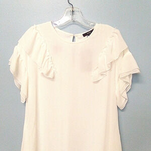 Be the Woman in Off White with a Ruffled flowy BOHO SHEER Layer S L MINI Dress