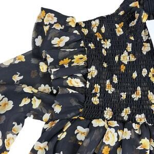 NWT o.p.t. Black Sheer Floral Ruched Mock Neck S Blouse MSRP $128 Cottagegoth
