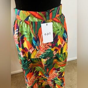 NWT o.p.t Tropical print tiered maxi skirt. 100% cotton. Side Zipper