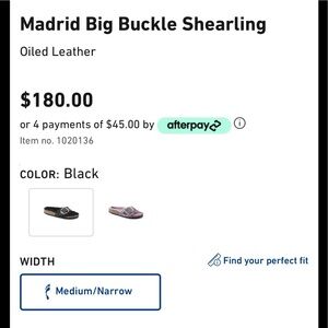 NWT or NWOT Birkenstock Madrid Big Buckle Shearling Ladies 5, 6, 7, 8, 9 Black