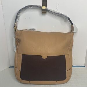 NWT orYANY Adele Colorblock Beige/ Brown Leather Hobo Bag