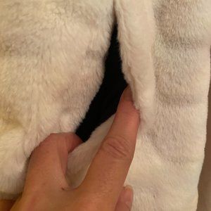 Beautiful, very comfortable and soft Lucy Faux Fur Vest in Ivory. This has never been worn-the tags are off, but the plastic part is on. Fabric is polyester. mesh-like lining. Front side pockets. This is so beautiful; looks clean, fresh and flowy. Size Large Measurements: Armpit to armpit: 23 inches Length: 30 inches