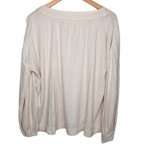 In Loom clothing Free People Anthropologie aerie boutique zara boho waffle knit thermal flowy boxy balloon sleeves casual feminine vneck ivory cream white bohemian relaxed oversized