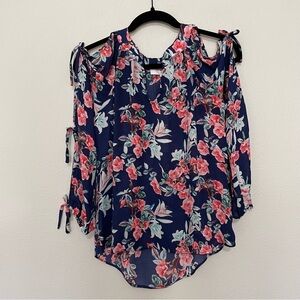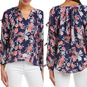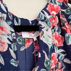 NWT parker tie sleeve blouse in aster floral sz.XS womens blue & pink transition