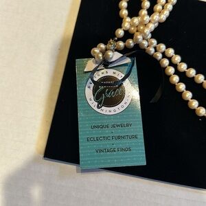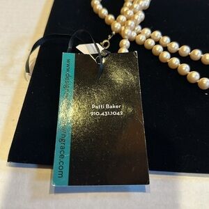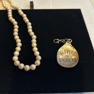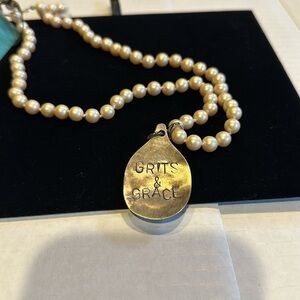 NWT pearl faux necklace with Grits & Grace saying in front removable charm w box