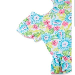 Adorable two-piece floral set with pull on shorts and matching top. The perfect vacation set!