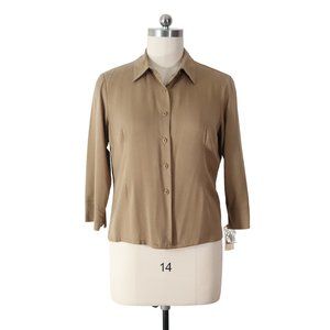 NWT pendleton tan tencel lyocell button up shirt L large womens blouse top NEW