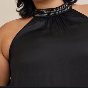 NWT plus Size Torrid Satin black Beaded Halter Top Size 3X see all pictures any questions please message.