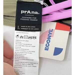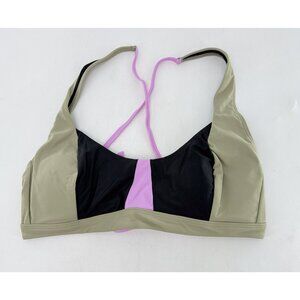 NWT prAna Tulum Bikini Top Black Color Block Green Black Lilac Sz L Beach