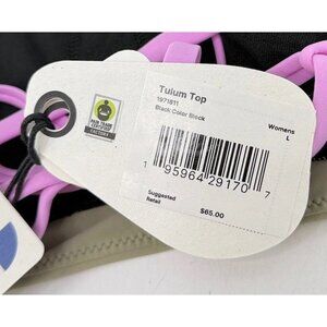 The NWT prAna Tulum Bikini Top in Black Color Block features a stylish and vibrant design perfect for the beach or pool. This bikini top is a size L and is designed specifically for women, with a classic bikini style that is both sporty and colorful. It is made with high-quality materials and should be hand washed only to maintain its appearance. The black color block with green accents adds a pop of color to your summer wardrobe, making it a perfect choice for those who love stylish and comfortable swimwear. New with tags. Please feel free to ask any questions.