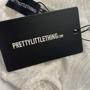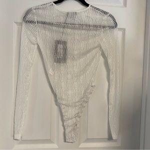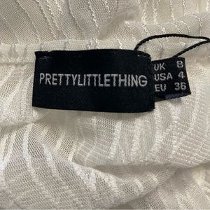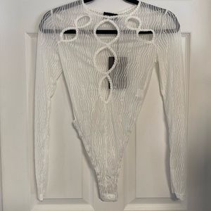 NWT pretty little thing white cutout Mesh bodysuit long sleeve size 4 US.