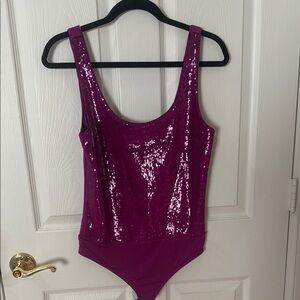 Brand new adorable song sequin bodysuit by express. Beautiful purple color. Never even tried it on with the tissue paper still in place. Body contour collection so it sucks. You in real good. Awesome for New Year’s. Smoke free home.