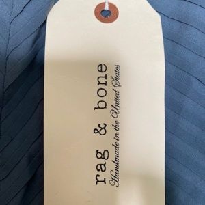 NWT rag & bone 100% silk skirt. Beautiful pleated design in dusty blue. Style is called the Newton Skirt. Black elasticized waist band with zipper on the side.