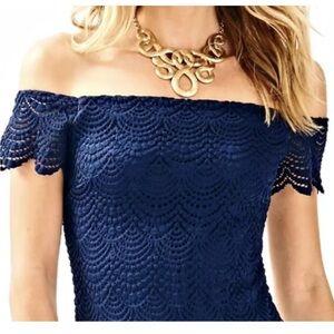 NWT retail $198 Lilly Pulitzer Jade Dress - Navy Shell Scalloped Lace -sm
