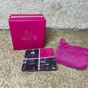 Costume jewelry ring. Unknown metal and stones. Size in photos. Comes with box, and pink drawstring bag.