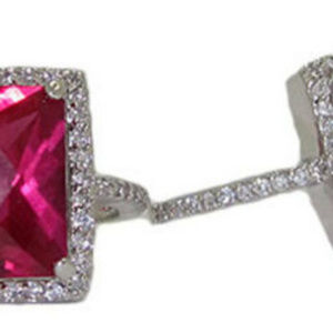 This ring is an inverted cushion cut pink sapphire 14 x 10 mm in a tight knit pave undercarriage with an open airline split diamond pave band. This cocktail style ring was used for an engagement ring for Nicole, it has a center stone mounted upside down; its cost was $10,000.00 for the real one. Mine is a 1st Quality AAA Fancy, Diamond Cubic Zirconia' by Swarovski CZ elements set in 18 karat white gold plate. Center Stone is 3/8 by 5/8 inches,. The perfect Valentine's and Mother's Day Jewelry 2363