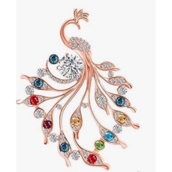 NWT rose gold tone rhinestone peacock statement brooch pin Alpha Chi Omega