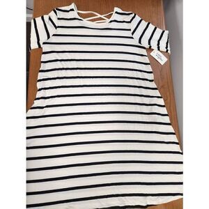 NWT rumi + ryder white striped long sleeved A line dress with side pockets