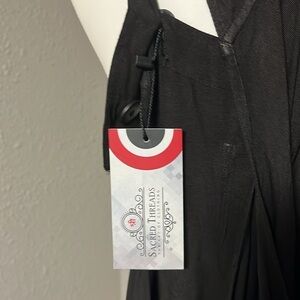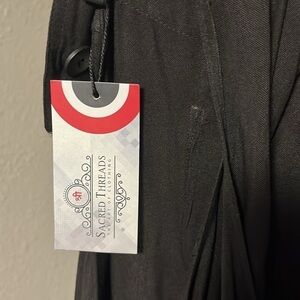 These rayon bibs with tie-dyed legs are so cute. There’s three button sizes on the straps over the shoulder as well as the waist and also a drawstring waist line, front pockets, and one front pocket in the front of the overalls