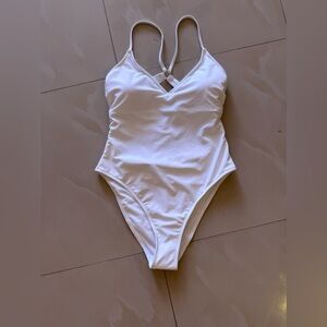 Questions? Leave a comment below! shade and shore white one piece swimsuit size 8/10 high leg cheeky