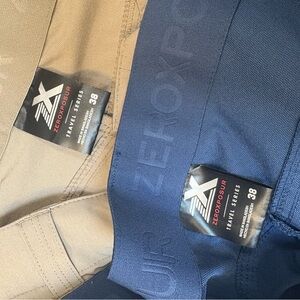 Two pairs of comfy versatile shorts, dressy look but athletic fabric. Never worn no damage, the size sticker left some residue on the blue pair that will likely come out in the wash. No trades, selling for a friend