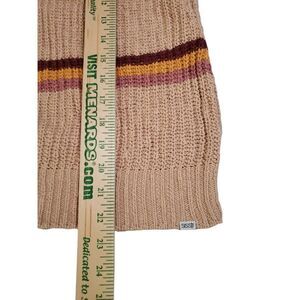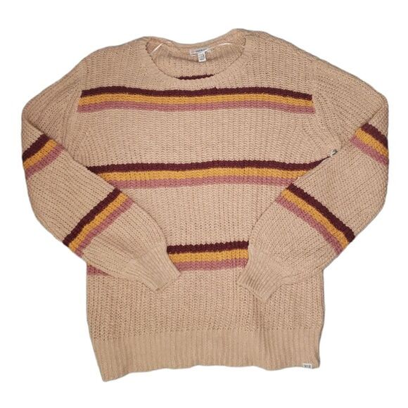 sisstrEvolution Tan Striped Cotton Long Sleeve Sweater - Small- New With Tags loose knit 100% cotton sweater brought to you by the surfer girls burgundy, dark yellow, and pink striped see measurements in photos. this is designed to be loose-fitting.