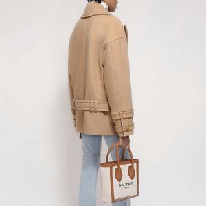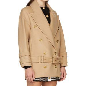 NWT size 10 Balmain Double breasted Wool Cashmere blend Felt Pea Coat in…