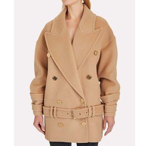 NWT size 10 Balmain Double breasted Wool Cashmere blend Felt Pea Coat in…