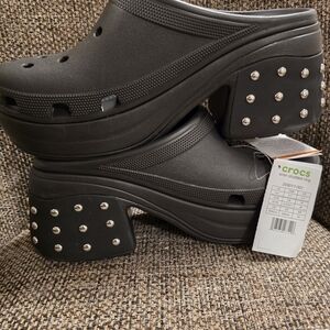 NWT size 11 CROCS Black Platform Studded Heel Siren Clog