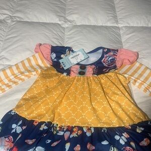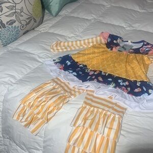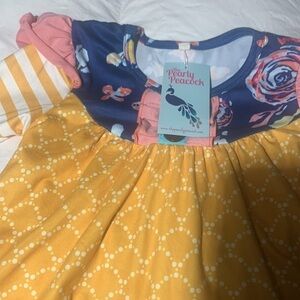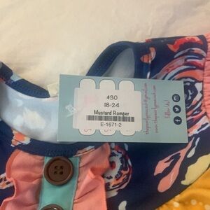 Like Matilda Jane romper set NWT blue- yellow-pink cotton spandex Pearly Peacock boutique brand original price $30 size 18-24 no.