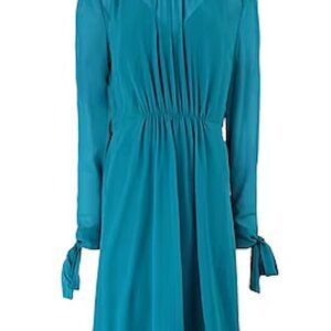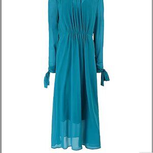 NWT size 4 S Silk Chiffon Midi Pleated Dress Asymmetric Hem Lined Turquoise Blue
