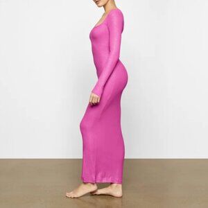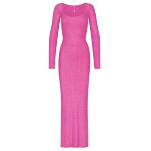 NWT size L SKIMS SOFT LOUNGE SHIMMER LONG SLEEVE DRESS IN FUCHSIA FOIL