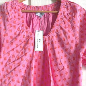 NWT size S Never A Wallflower pink 9 dot punch marakesh blouse top short slv