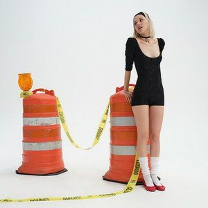 NWT size XL 12-14 For Love & Lemons Marni Bodysuit Romper Black