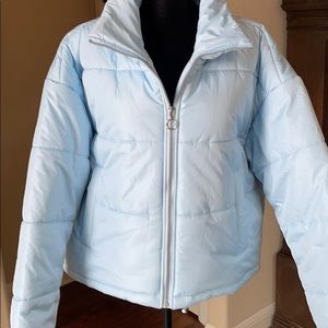 NWT celebrity Pink puffer jacket size XL. Powder blue color. Zip closure. Size pockets.