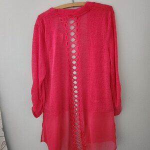 NWT size XL a.moon cardigan cheery azalea pink polyester new lightweight sheer