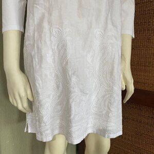 NWT size XSP XS petite J. Jill white linen tunic embroidered collar 3/4 sleeve n