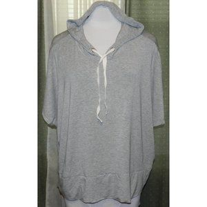 This plus size women's hoody is a Cut the Frills design. Size is one size. Brand new with tags. It's 95% rayon and 5% spandex. Medium gray with elbow length sleeves. Pull over with a hoody that ties at the neckline. No pockets and is light weight with an awesome stretch. Machine washable.