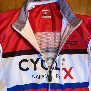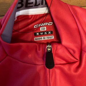 NEW Capo women's bike jersey / wind vest size XS. From Cycle X in the Napa Valley. Red, white and blue. Full zip, rear pockets. There is a photo of the Capo size chart for guidance on sizing. Also measurements in photos.