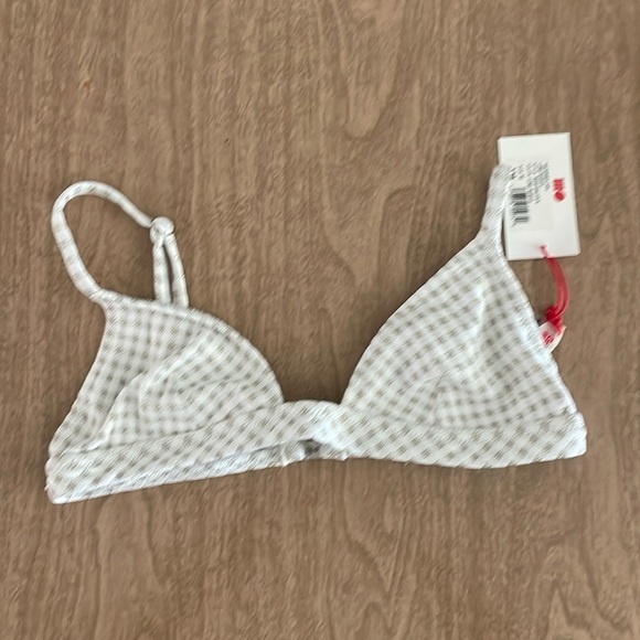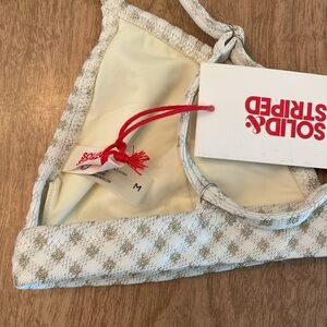 One size medium Solid & Striped bathing suit top new with tag never worn the squares are gold metallic with white