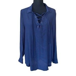 Staccato top. Navy blue with criss cross tie detail. NWT.