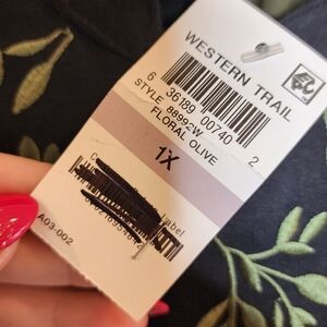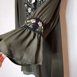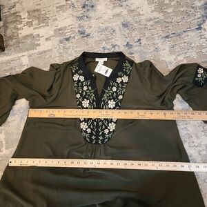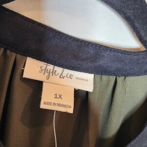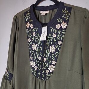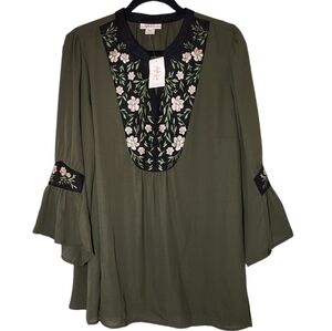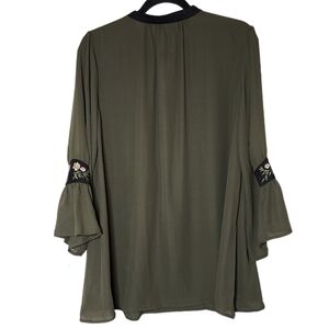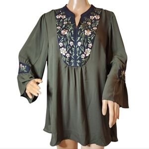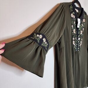 NWT style & co green floral embroidered flare sleeve blouse. Women's size 1X.