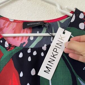New with tags adorable shirt or shirt dress from Minkpink brand. Pretty and cool graphic floral print. Loose swingy fit. For a little sixties flair.